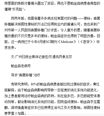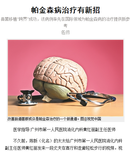 《广州日报》帕金森病治疗有新招2019年11月15日A23版