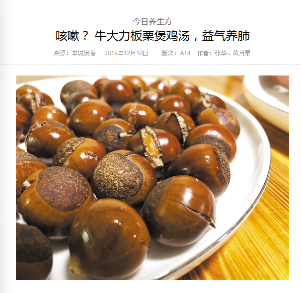 《羊城晚报》咳嗽? 牛大力板栗煲鸡汤,益气养肺2019年12月10日A14版