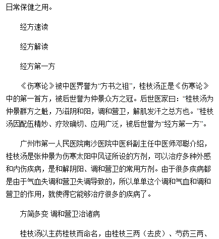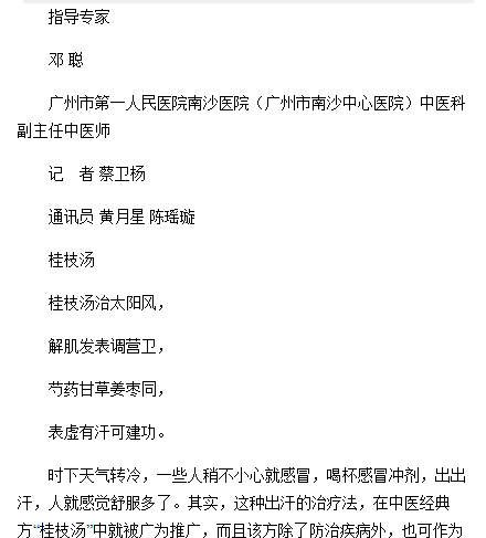 《老人报》桂枝汤: “经方第一方” 调和营卫治诸病2019年11月4日A8版