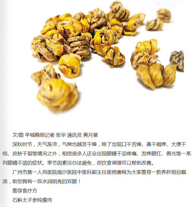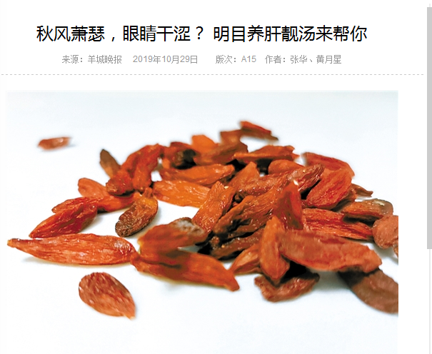 《羊城晚报》秋风萧瑟,眼睛干涩? 明目养肝靓汤来帮你2019年10月29日A15版