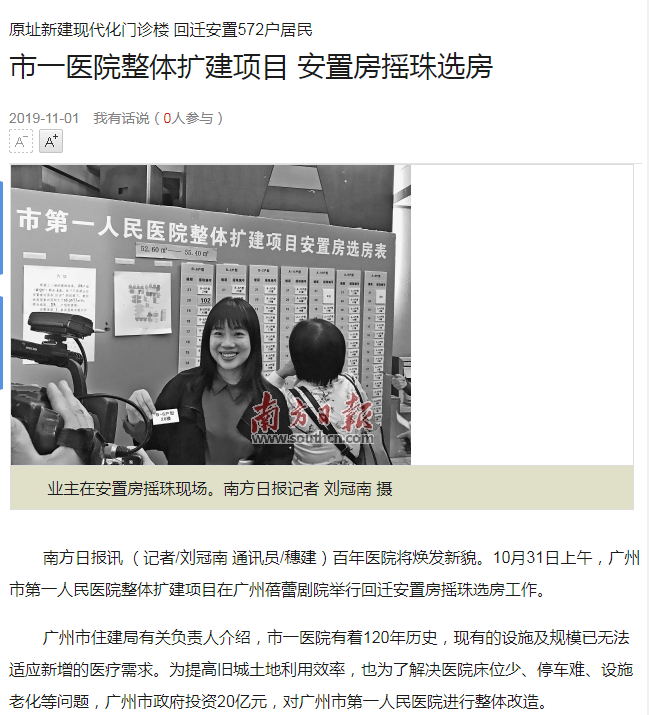《南方日报》市一医院整体扩建项目 安置房摇珠选房2019年11月1日GC03版