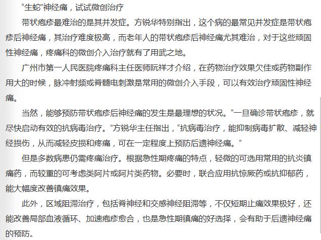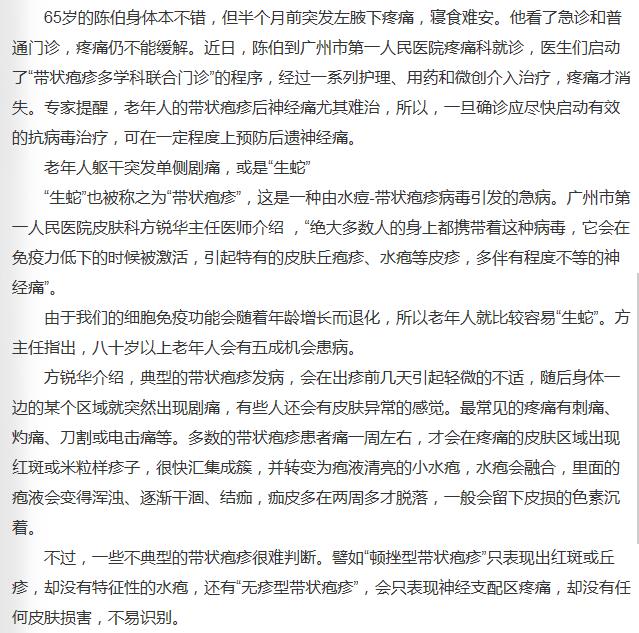 《羊城晚报》:避免“生蛇”后遗留剧痛 抗病毒越快越好 2019年8月20日A16版