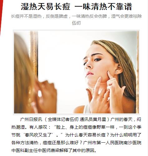 《广州日报》:湿热天易长痘 一味清热不靠谱 2019年4月19日A22版
