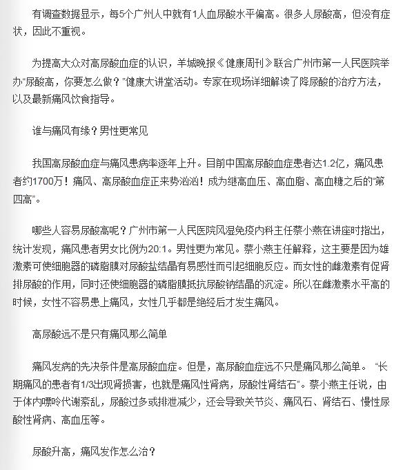 《羊城晚报》:尿酸升高痛风发作——怎么办? 2019年4月30日A18版