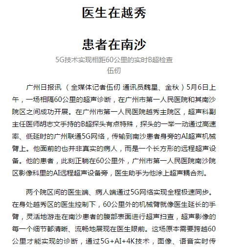 《广州日报》:医生在越秀 患者在南沙 2019年5月8日A16版