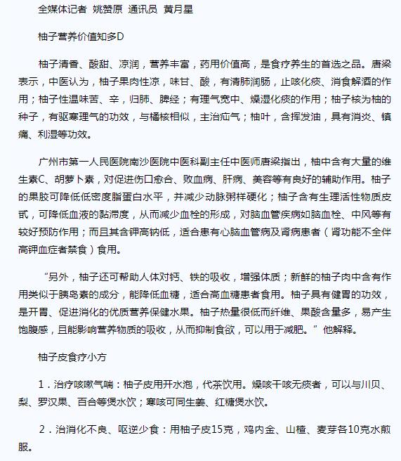 《健康养生周刊》:用柚子皮入膳好吃又养生 2019年3月5日A8版