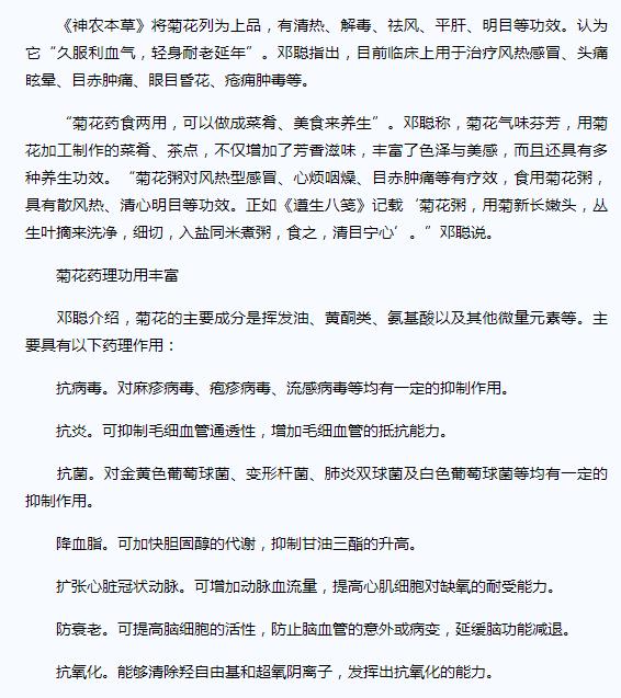 《健康养生周刊》:怀菊花:轻身延年 药理功用丰富 2019年3月5日A5版