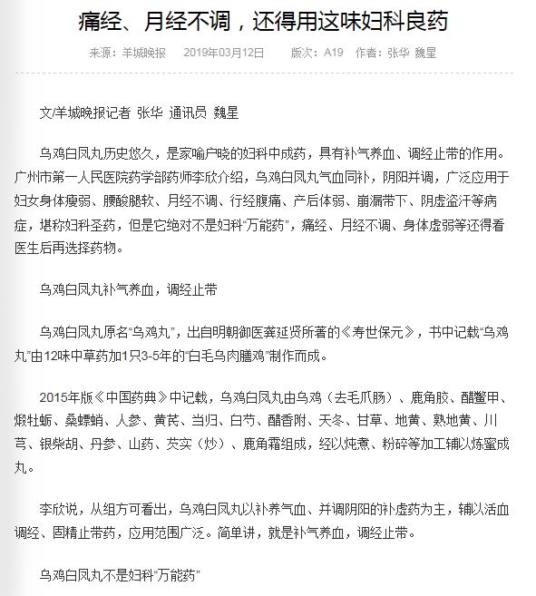 《羊城晚报》:痛经、月经不调,还得用这味妇科良药 2019年3月12日A19版