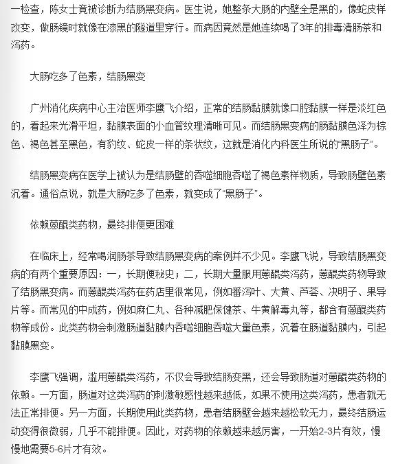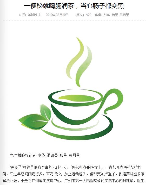 《羊城晚报》:一便秘就喝肠润茶,当心肠子都变黑 2019年2月19日A20版