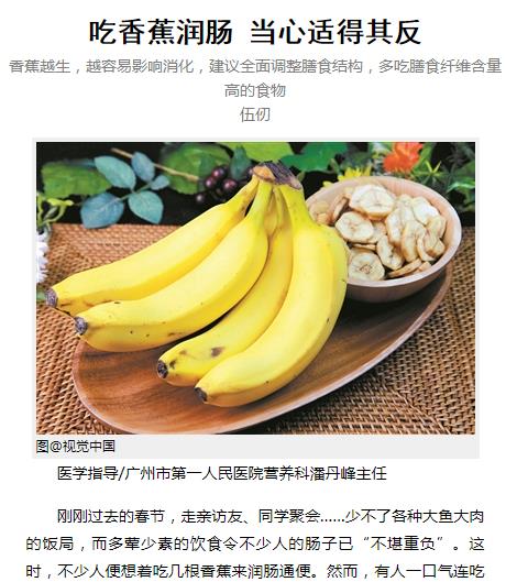 《广州日报》:吃香蕉润肠 当心适得其反 2019年2月20日A16版