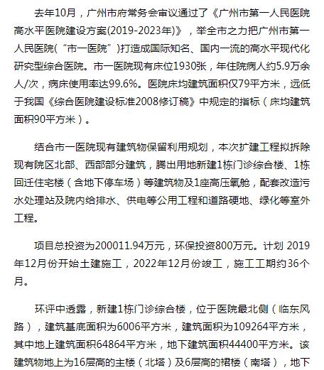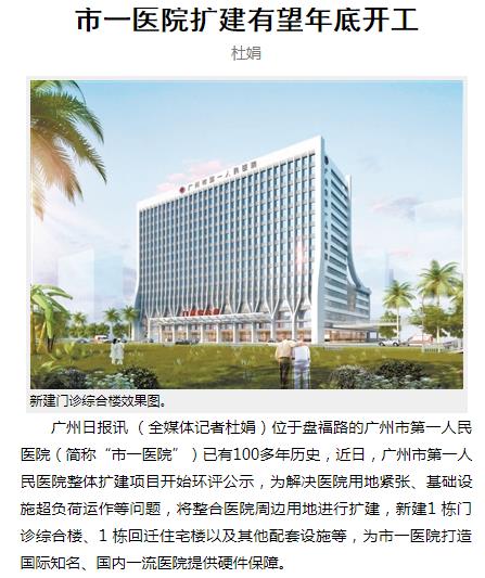 《广州日报》:市一医院扩建有望年底开工 2019年1月14日A24版