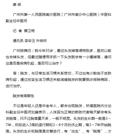 《老人报》:脱发增多可以治疗吗 2019年1月14日A8版