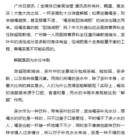 《广州日报》:喝茶能刮油减肥?不可靠! 2018年12月12日A20版
