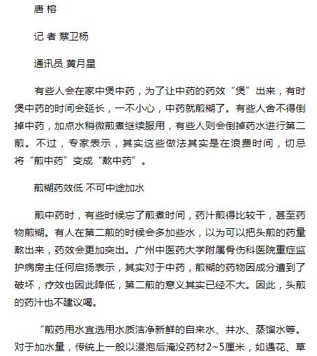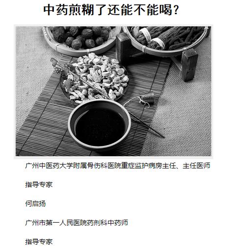 《老人报》:中药煎糊了还能不能喝? 2019年1月7日A10版