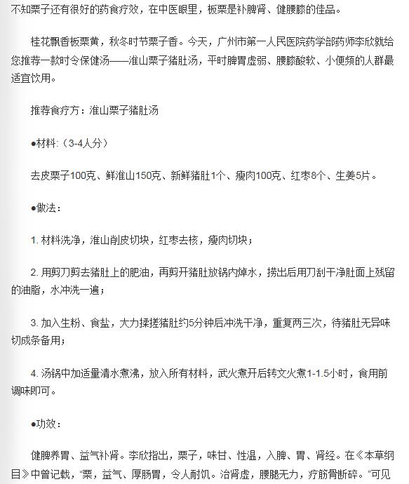 《羊城晚报》:栗子不仅是零食 拿来煲汤治肾虚 2018年11月27日A19版