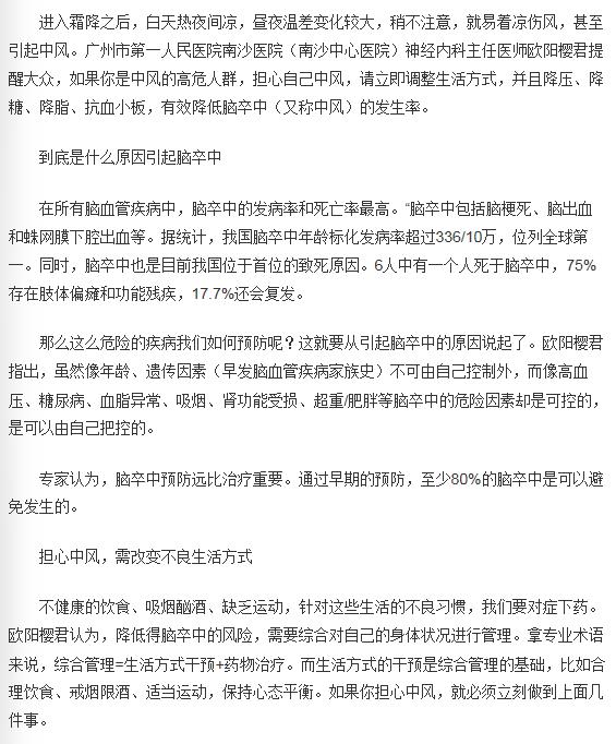 《羊城晚报》:中风“报警”,避险有哪几招? 2018年10月30日A19