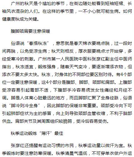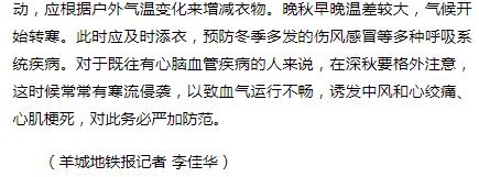 《羊城地铁报》:秋季保健 4个部位不能“冻” 2018年11月5日A6版