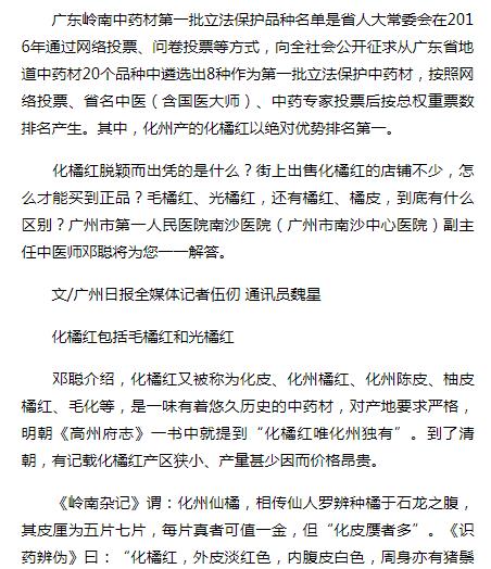 《广州日报》:化痰止咳 毛橘红最地道 2018年10月5日