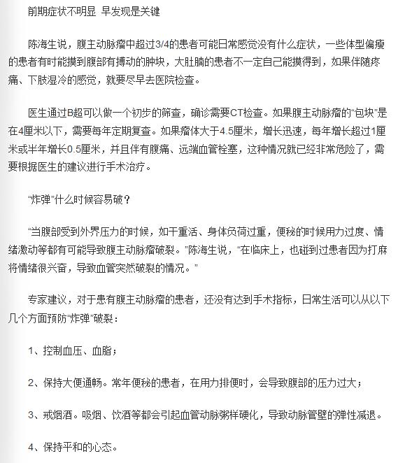 《羊城晚报》:摸到腹部有会跳动的小包块? 2018年4月17日B02版