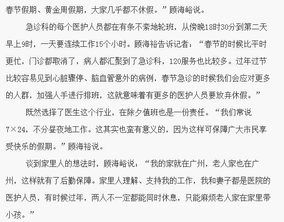 《信息时报》:急诊医生21年坚守春节岗位 2018年2月18日A3版