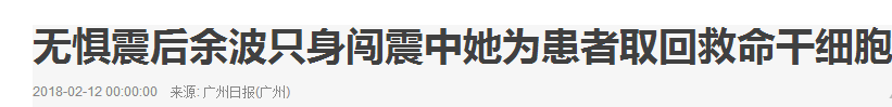 《广州日报》:无惧震后余波只身闯震中她为患者取回救命干细胞 2018年2月12日A15版