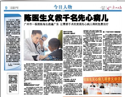 《广州日报》:陈医生义救千名先心病儿 2017年11月28日A9版
