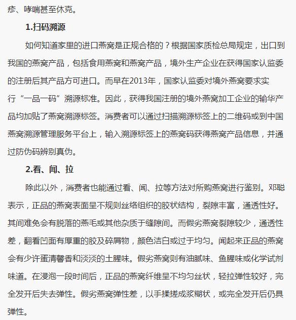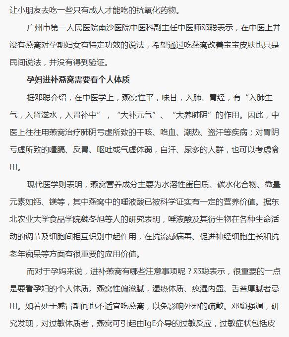 《信息时报》:进补燕窝后产下宝宝更白嫩?非也 2017年9月6日B12版