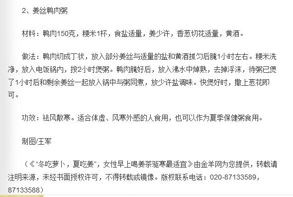 《羊城晚报》:“冬吃萝卜夏吃姜”,女性早上喝姜茶驱寒最适宜 2017年7月18日B04版