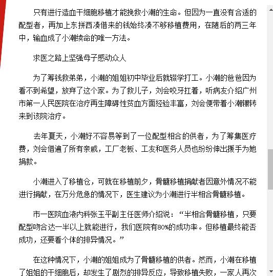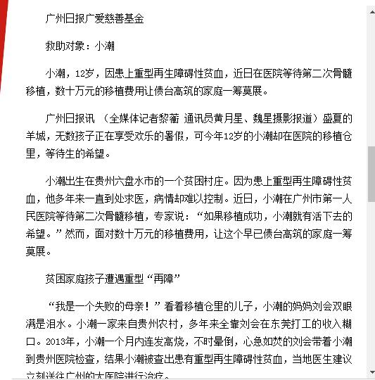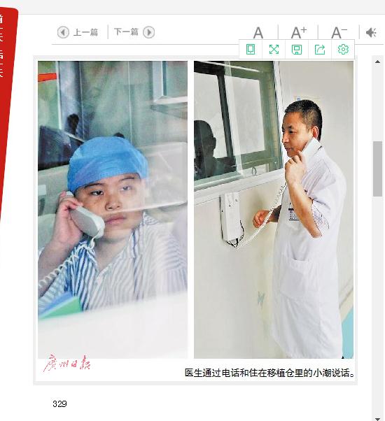 《广州日报》:12岁男孩移植舱内等待希望 2017年7月24日A17版