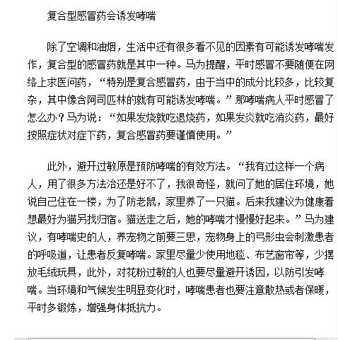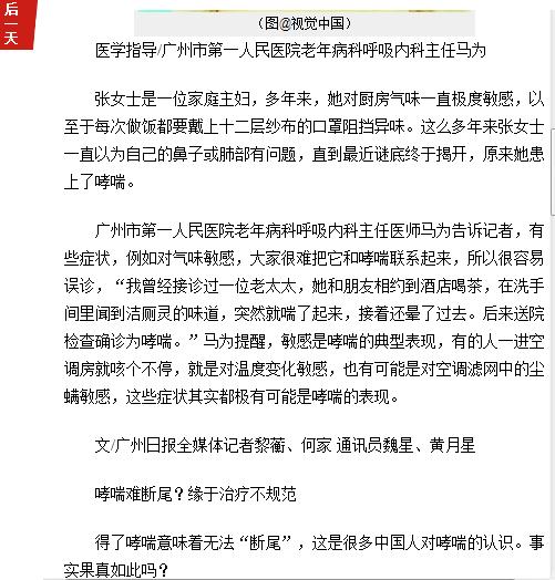 《广州日报》:一开空调就咳个不停 或是哮喘作怪 2017年6月27日A22版