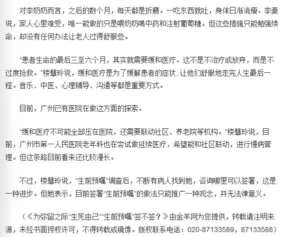 《羊城晚报》:为弥留之际“生死由己”“生前预嘱”签不签? 2017年4月3日A02版