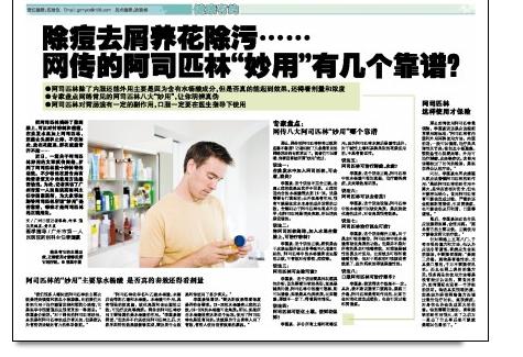 《广州日报》:除痘去屑养花除污……网传的阿司匹林“妙用”有几个靠谱?2017年1月16日B3版