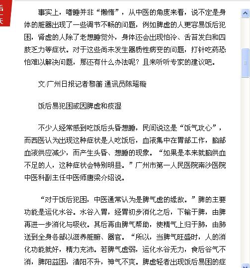 《广州日报》:健脾化湿 赶走午后“瞌睡虫” 2017年1月8日B7版