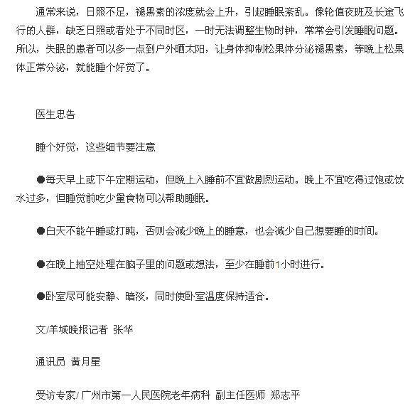 《羊城晚报》:失眠只能吃药治?非也,治失眠方法多多 2016年11月30日B04版