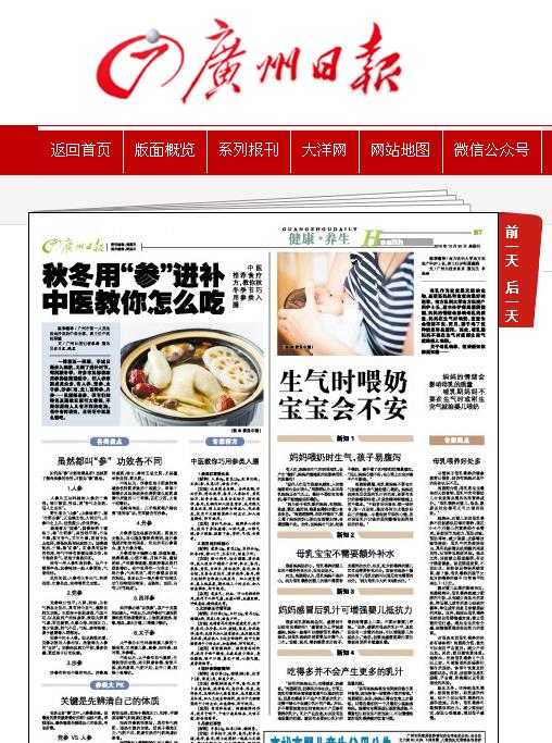 《广州日报》:秋冬用“参”进补,中医教你怎么吃 2016年10月30日B7版