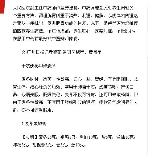 《广州日报》:心烦口干 试试这四味药材 2016年9月6日A22版