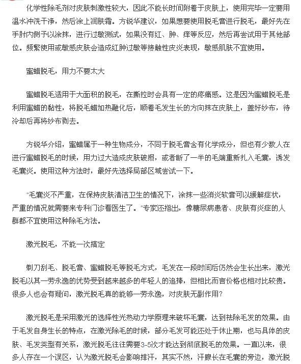 《羊城晚报》:除毛方法哪种好? 2016年8月9日B06版