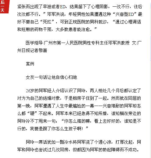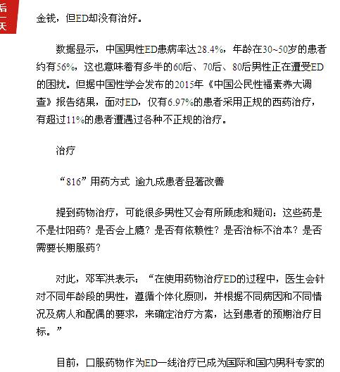 《广州日报》:年轻男性ED 多因“心病” 2016年7月10日B8版