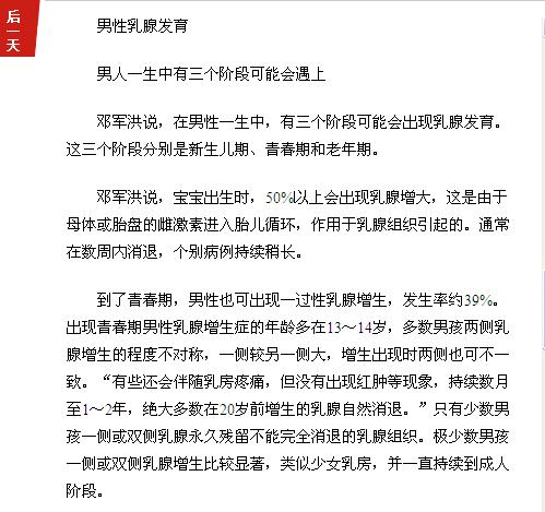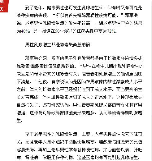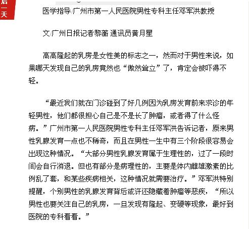《广州日报》:男人乳房也发育?多数正常! 2016年6月26日B8版
