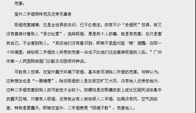 《广州日报》:行街吸二手烟 市民喊顶唔顺 2016年1月22日 A15版