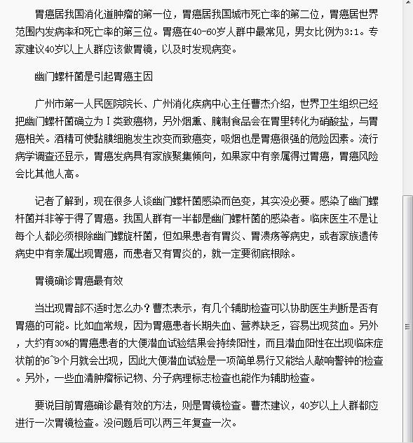 《健康养生周刊》:40岁以上胃不适需排查胃癌 2015年7月14日A02版