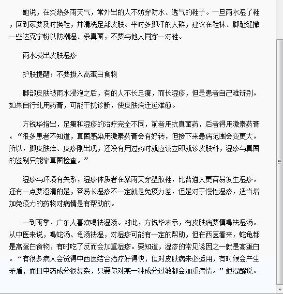 《健康养生周刊》:雨水伤皮肤足癣湿疹不请自来 2015年6月2日