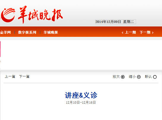 《羊城晚报》:讲座义诊 2014年12月9日B07版