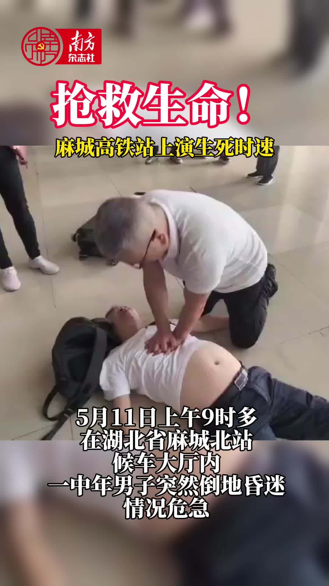 5月11日上午9时多,在湖北省麻城北站候车大厅内,一场争分夺秒的生命救援正在上演。一位中年男子突然倒地昏迷,情况危急。关键时刻,两位来自广州的医生挺身而出,用专业的急救技能和坚定的信念,为患者赢得了宝贵的生机。