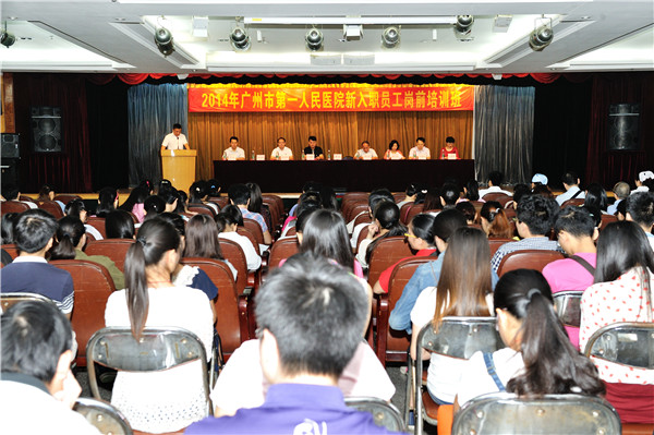 10月22日至24日,我院在广州医科大学体育馆举行了为期三天的2014年新入职员工岗前培训班,全院新招聘职工、专科医师培训学员共394名新入职人员,参加了此次培训。全体院领导为新职工代表佩戴了院徽。 开班首日,全体...