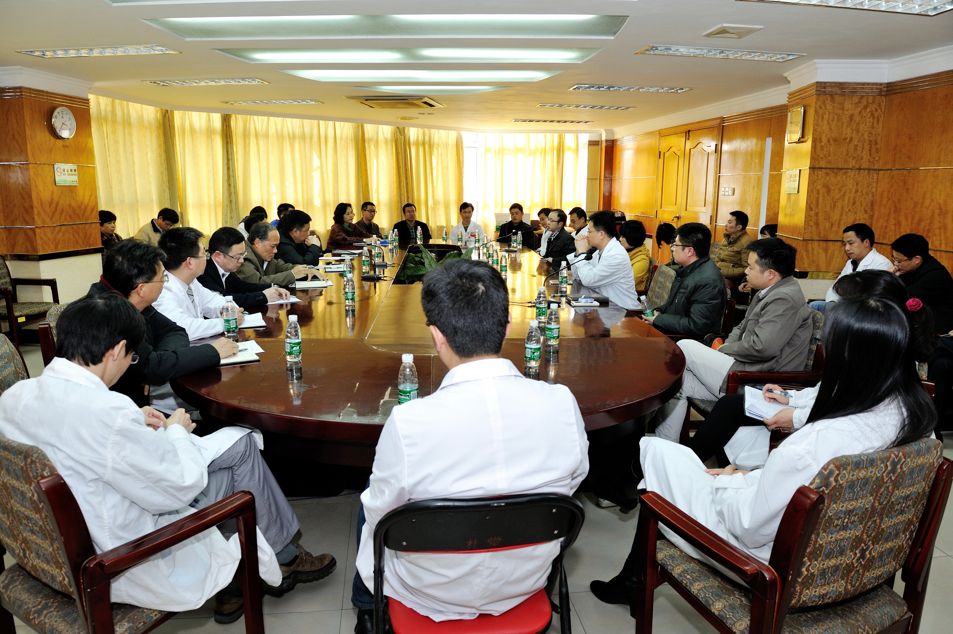 2015年1月15日下午,我院在门诊八楼一会议室举行出国研修人员座谈会。曹杰院长、蒋少艾书记、聂玉强副院长及职能部室主任、近3年选派出国留学人员以及新申请出国人员共40余人参加了座谈会,聂玉强副院长主持了会议。...