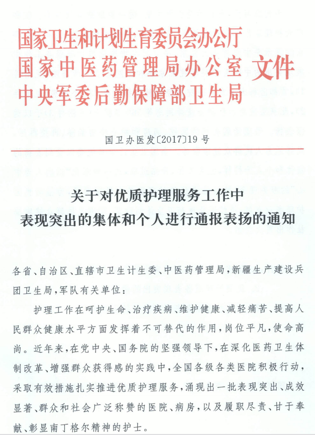 【喜讯】市一医院获评全国优质护理服务表现突出医院