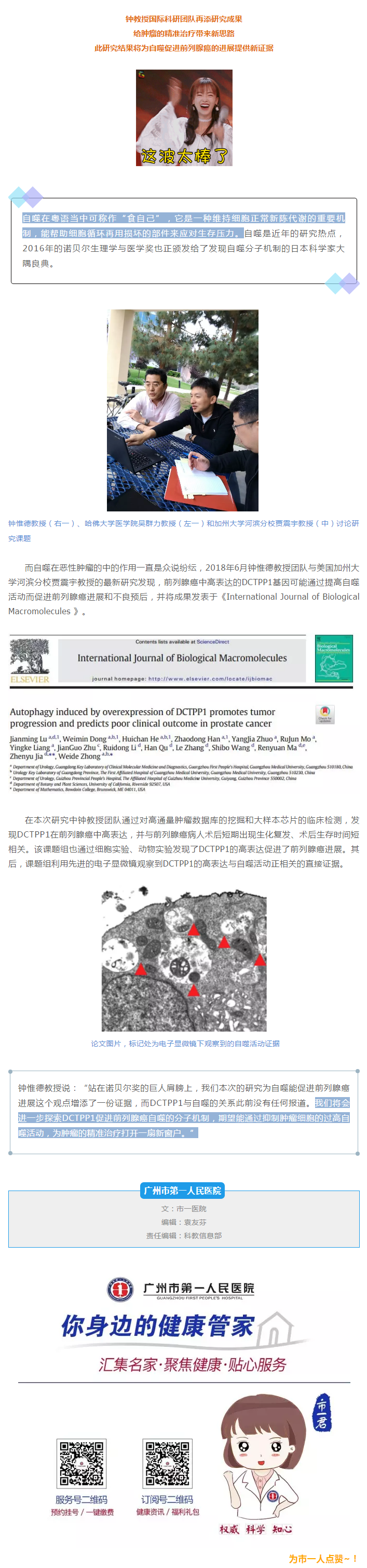 市一医院钟惟德教授团队最新研究发现自噬活动促进了前列腺癌的进展