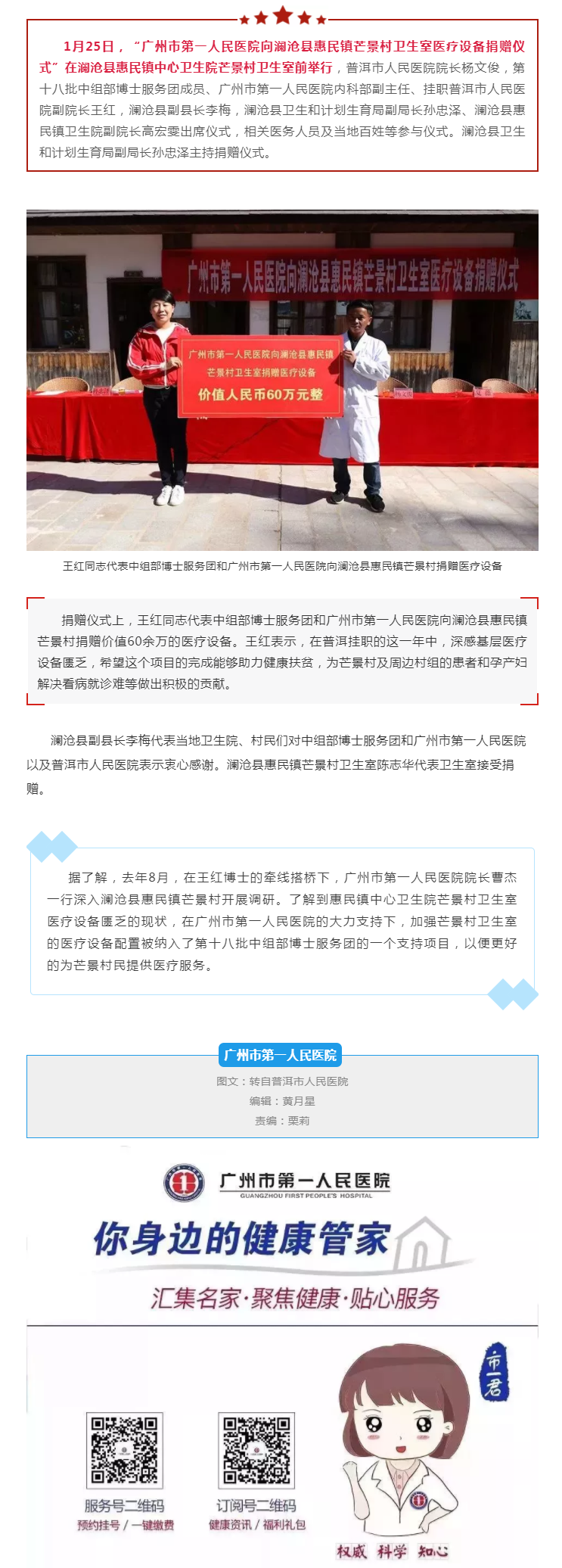 广州市第一人民医院向澜沧县惠民镇芒景村卫生室捐赠医疗设备