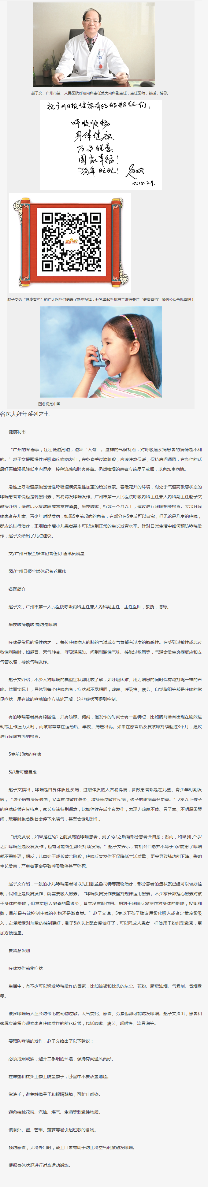 《广州日报》:感冒后长期咳嗽警惕哮喘 2018年2月22日A8版